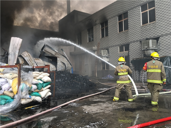 根據(jù)滅火方案,由寧德核電專職消防隊(duì)5名隊(duì)員尋找水源,在距火場600米處的內(nèi)河使用抽水泵串聯(lián)供水確保前方水源不間斷,兩名隊(duì)員對廠房進(jìn)行冷卻防止火勢蔓延到周邊公司。23點(diǎn)10分火災(zāi)現(xiàn)場基本得到了控制,但廠房內(nèi)陰燃與復(fù)燃小火較多仍需持續(xù)供水滅火。